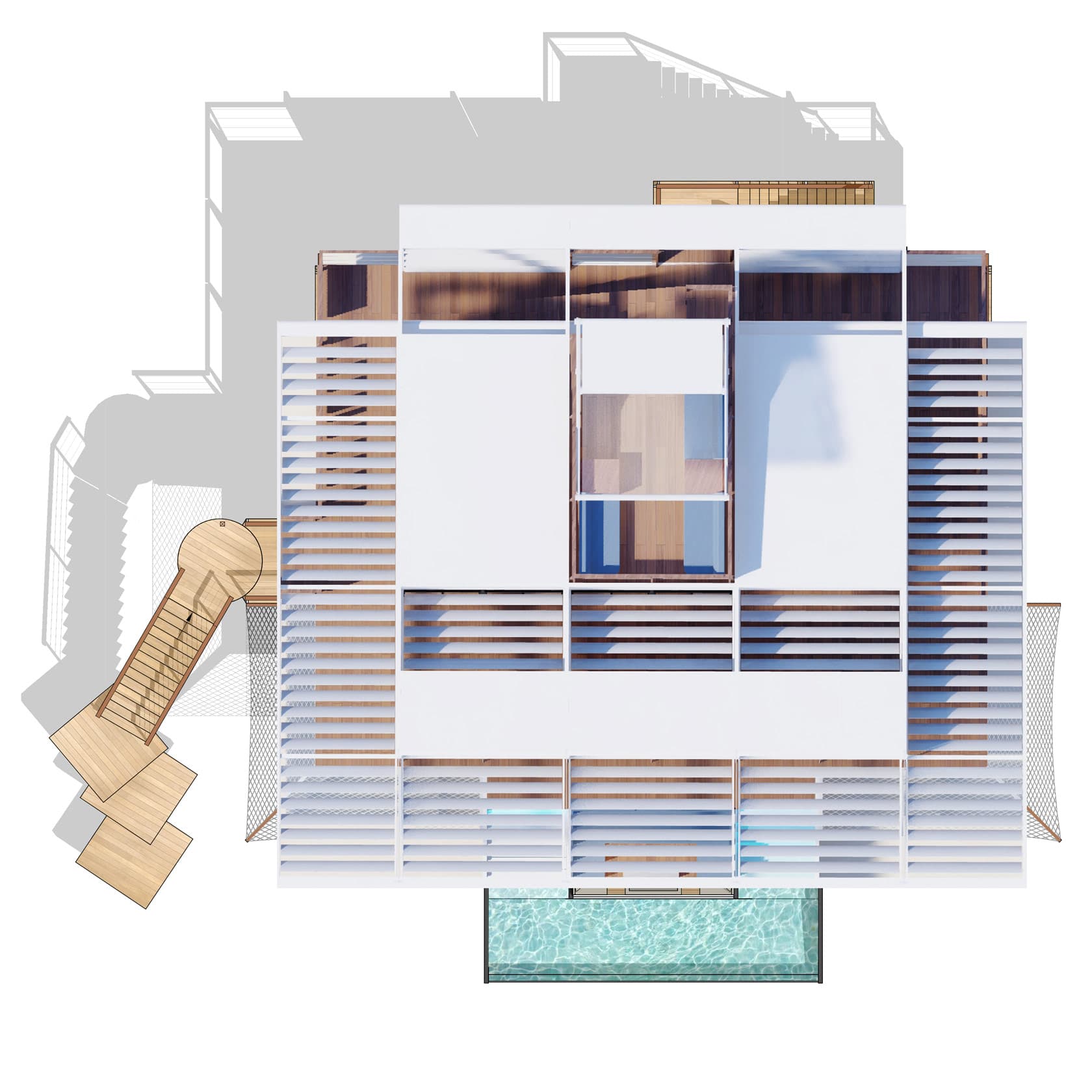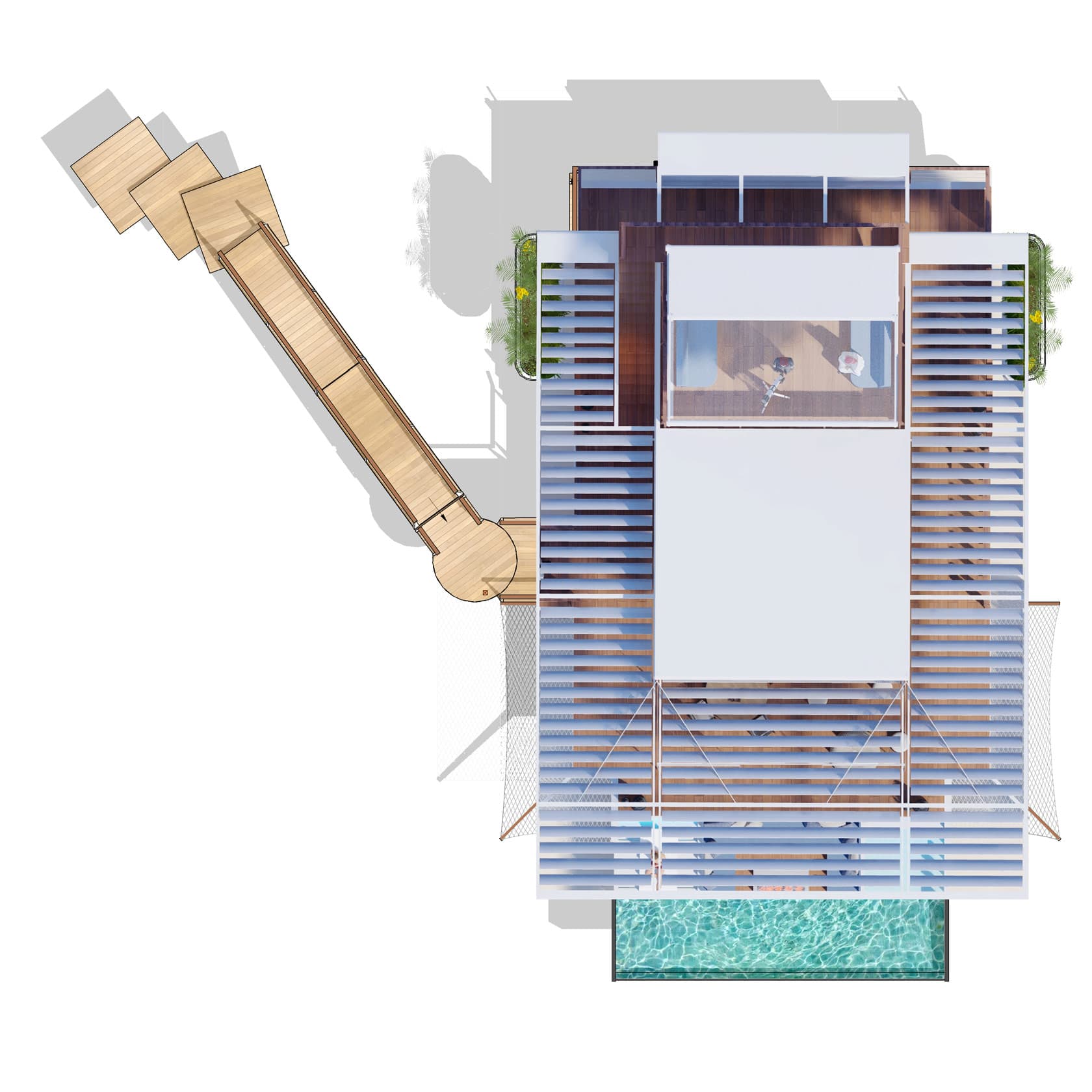 The slim model is designed to slot into narrow spaces, while providing 270° views from the glass-walled interior and the decks.